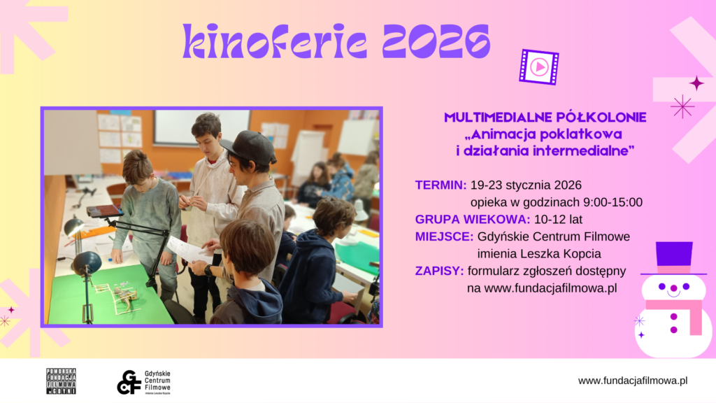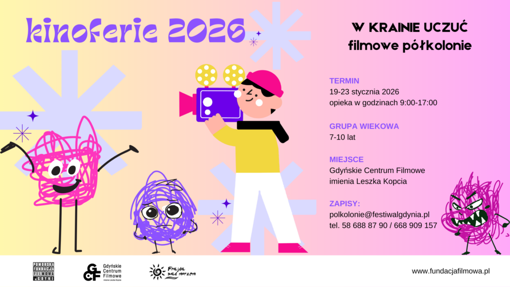Pomorska Fundacja Filmowa w Gdyni zaprasza do udziału w kolejnej edycji Kinoferii, czyli półkolonii na filmowo spędzonych w Gdyńskim Centrum Filmowym im. Leszka Kopcia.